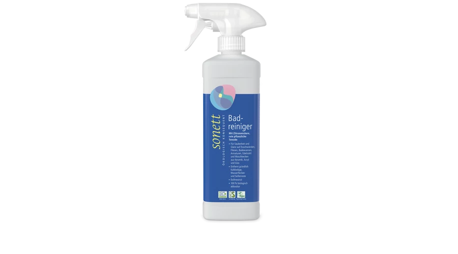 - Fújja a Fürdőszobatisztítót a tisztítandó felületre, röviden hagyja hatni (a szennyeződés mértékétől függően), törölje le és tiszta vízzel öblítse le